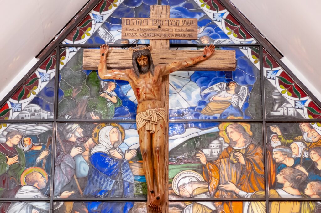Suspended in stillness yet alive with meaning, the Sindonic Crucifix stands as the heart of the sanctuary — the axis of mercy and the summit of faith. In its shadow, worship becomes encounter, and the faithful behold not merely a figure of pain, but the radiant image of love that redeems the world.